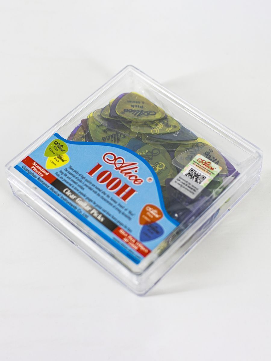 Alice AP-100H - практичный набор медиаторов из высококачественного нейлона, созданный для музыкантов, ценящих надёжность и разнообразие в игре. Комплект включает 100 медиаторов различных толщин, что делает его идеальным выбором для ежедневного использования.