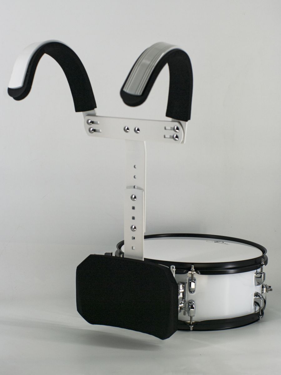 AP Percussion MP-1455 Барабан маршевый малый 14"х5,5" белый, черная фурнитура, держатель белый, палочки