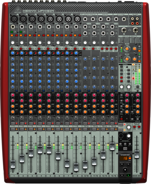 Behringer UFX1604 Пульт микшерный, универсальный малошумящий, премиум-класса, 10 мик., 4 стерео, 8 моновходов, 4 AUX-шины, 4 подгруппы, процессор эффектов, внешний USB-интерфейс, встроенный импульсный блок питания, energyXT2.5
