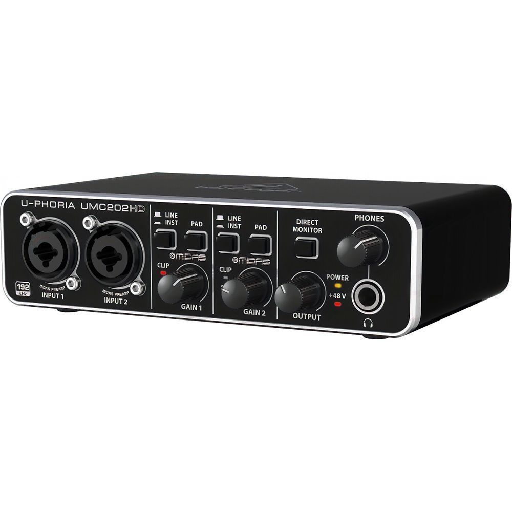 Behringer UMC202HD - это внешний USB-аудиоинтерфейс, позволяющий производить запись высококачественного аудио прямо в Вашей домашней студии. Аудиоинтерфейс легко работает с Mac и PC. Этот USB-интерфейс даст Вам все необходимое для записи двухканального аудио высочайшего качества. Оборудованный микрофонными предусилителями MIDAS, аудиоинтерфейс прекрасно запишет все нюансы вокального исполнения. Интегрированные комбо-выходы позволяют записывать сигнал линейного уровня, а при нажатии на переключатель, система перенастроится под использование гитары, бас-гитары или других инструментов. Более того, BEHRINGER UMC202HD включает в себя полноценную копию Tracktion – Вы сможете использовать большое количество эффектов и обеспечить возможность обработки прямо в процессе создания трека. Есть функция фантомного питания +48 В, которая необходима для использования профессиональных конденсаторных микрофонов.