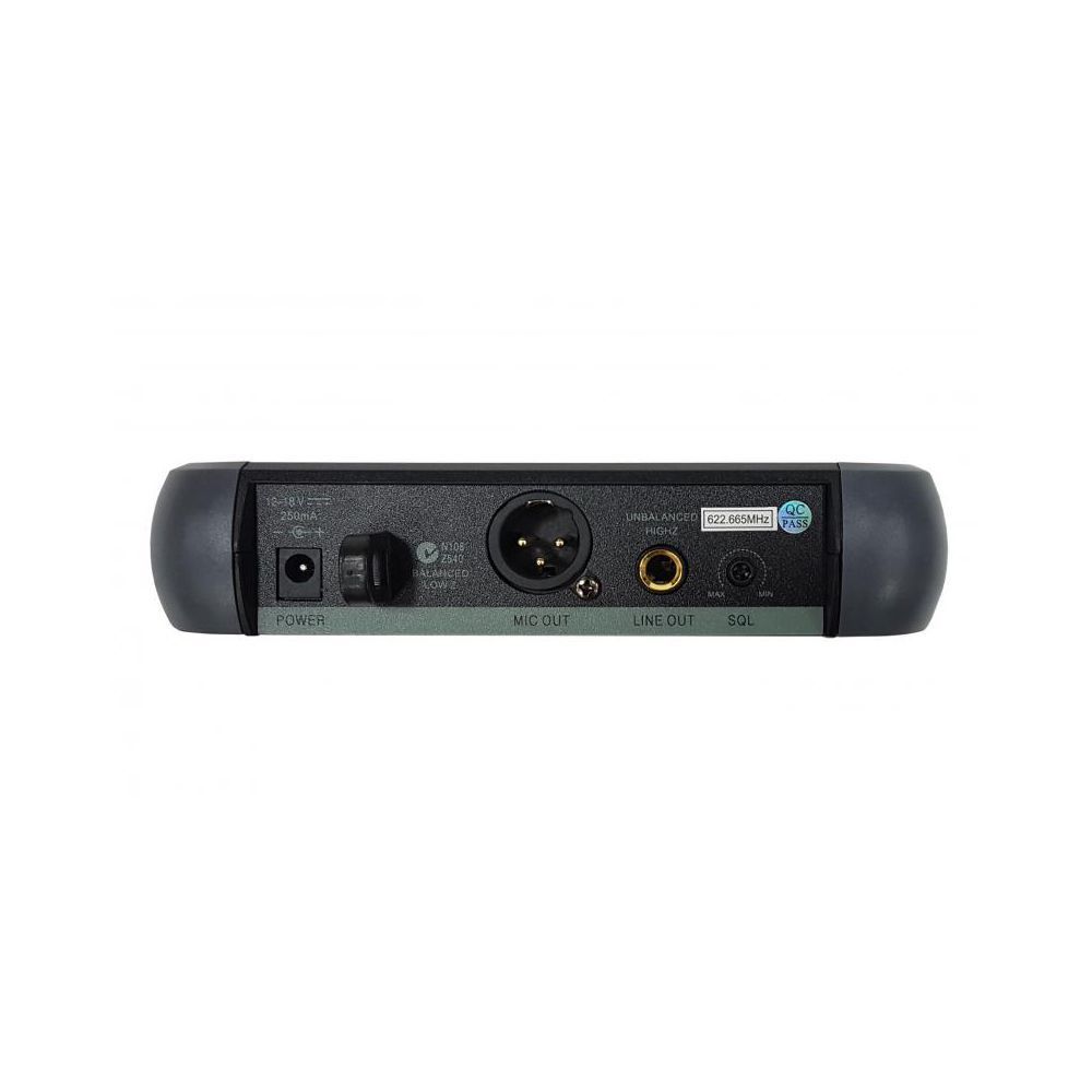 BG EU-45B представляет собой качественную вокальную радиосистему, которая работает в широком звуковом диапазоне. Модель можно использовать как на открытых площадках, так и на закрытых мероприятиях. Комплектация: 1. Приемник 2. Ручной микрофон Приемник: – индикатор переключателя ON/OFF – регулятор громкости – RF-индикатор – переключатель ON/OFF – антенна приемника – разъем кабеля питания – балансный выходной разъем – выходной аудиоразъем – регулятор шумоподавителя Микрофон: – капсюль – индикатор низкого заряда – переключатель питания – отсек для элементов питания