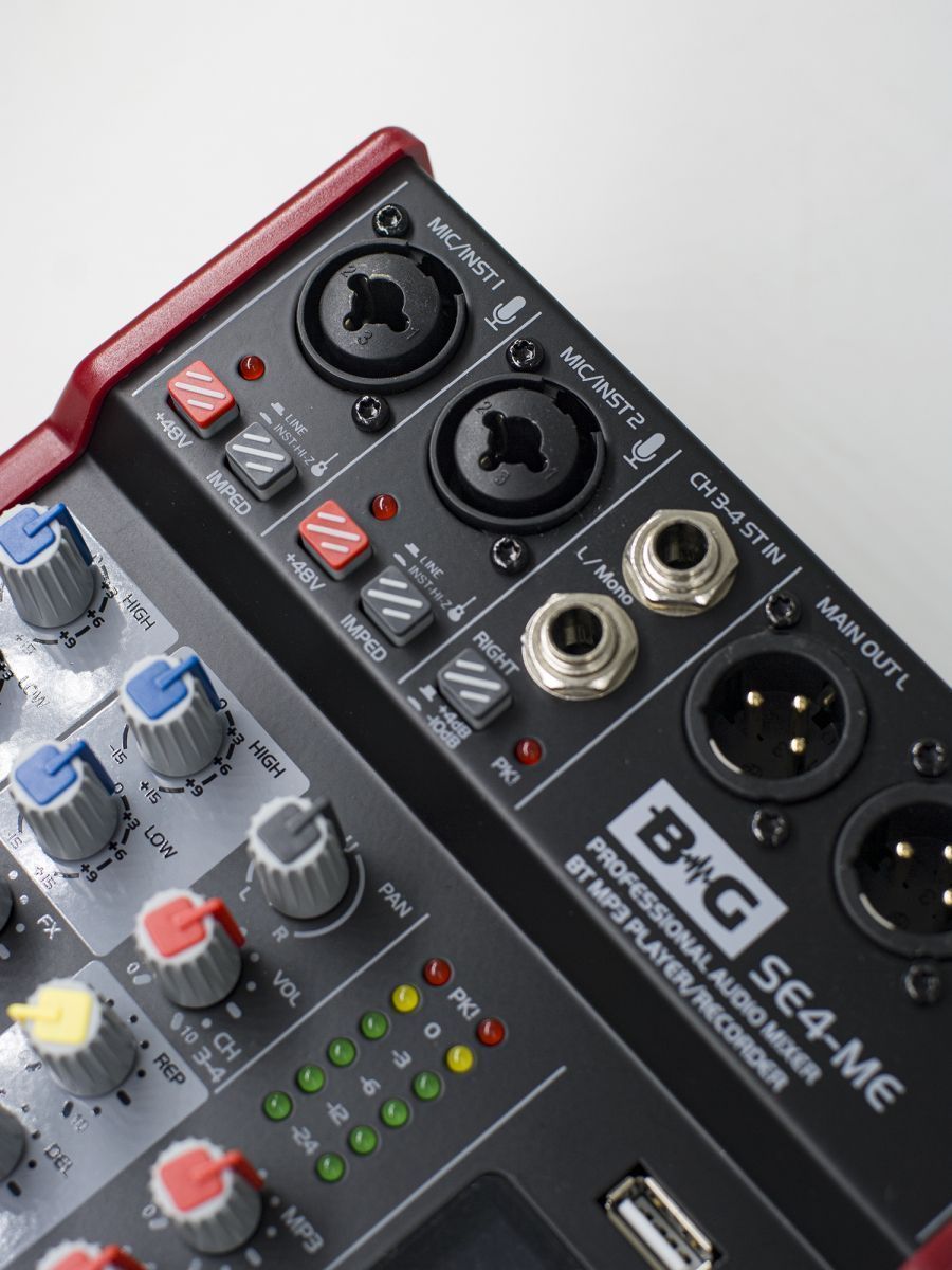 BG SE4-ME Пульт микшерный, 2 моно, 1 стерео, процессор эффектов, USB, MP3 плеер, BT, 2 полосный эквалайзер, фантомное питание