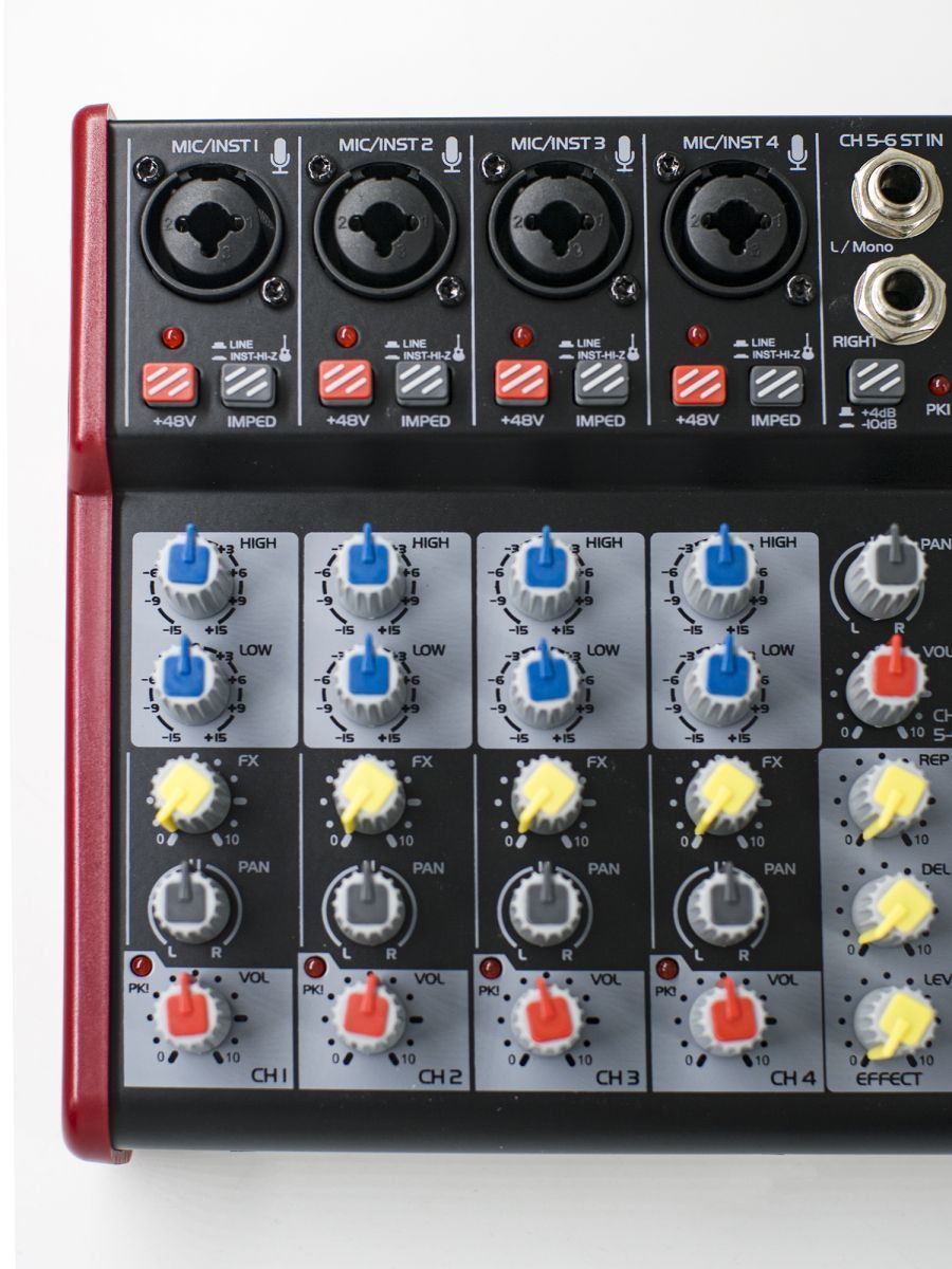 Пульт микшерный, 6 моно, 1 стерео, процессор эффектов, USB MP3, BT, 2 полосный эквалайзер