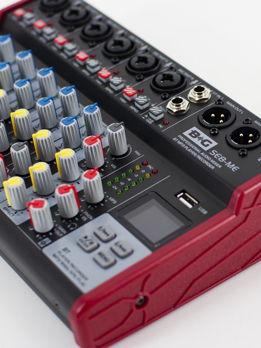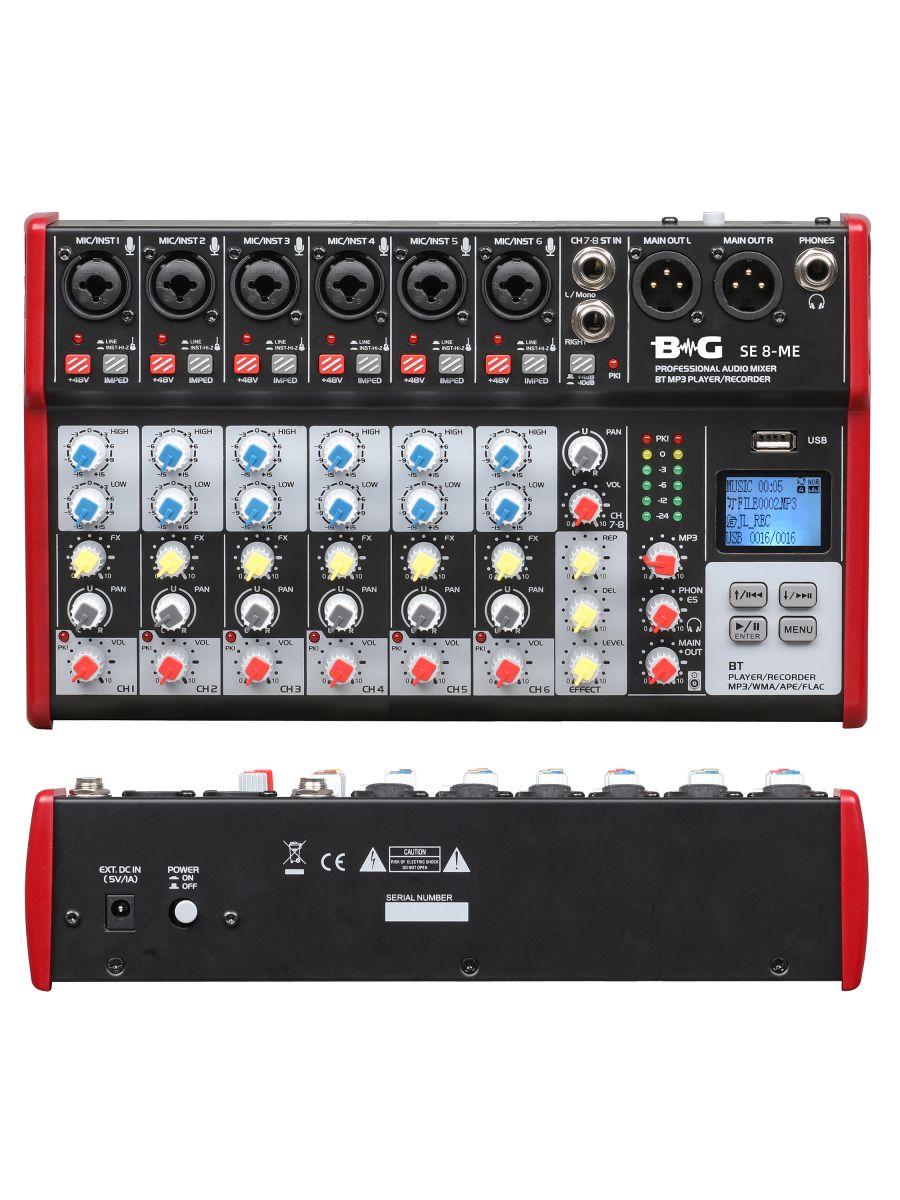 BG SE8-ME Пульт микшерный, 6 моно, 1 стерео, процессор эффектов, USB MP3 плеер, BT, 2 полосный эквалайзер, фантомное питание