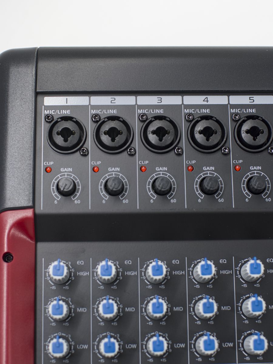 Пульт микшерный, 6 моно, 1 стерео, процессор эффектов, USB MP3, BT, 2 полосный эквалайзер