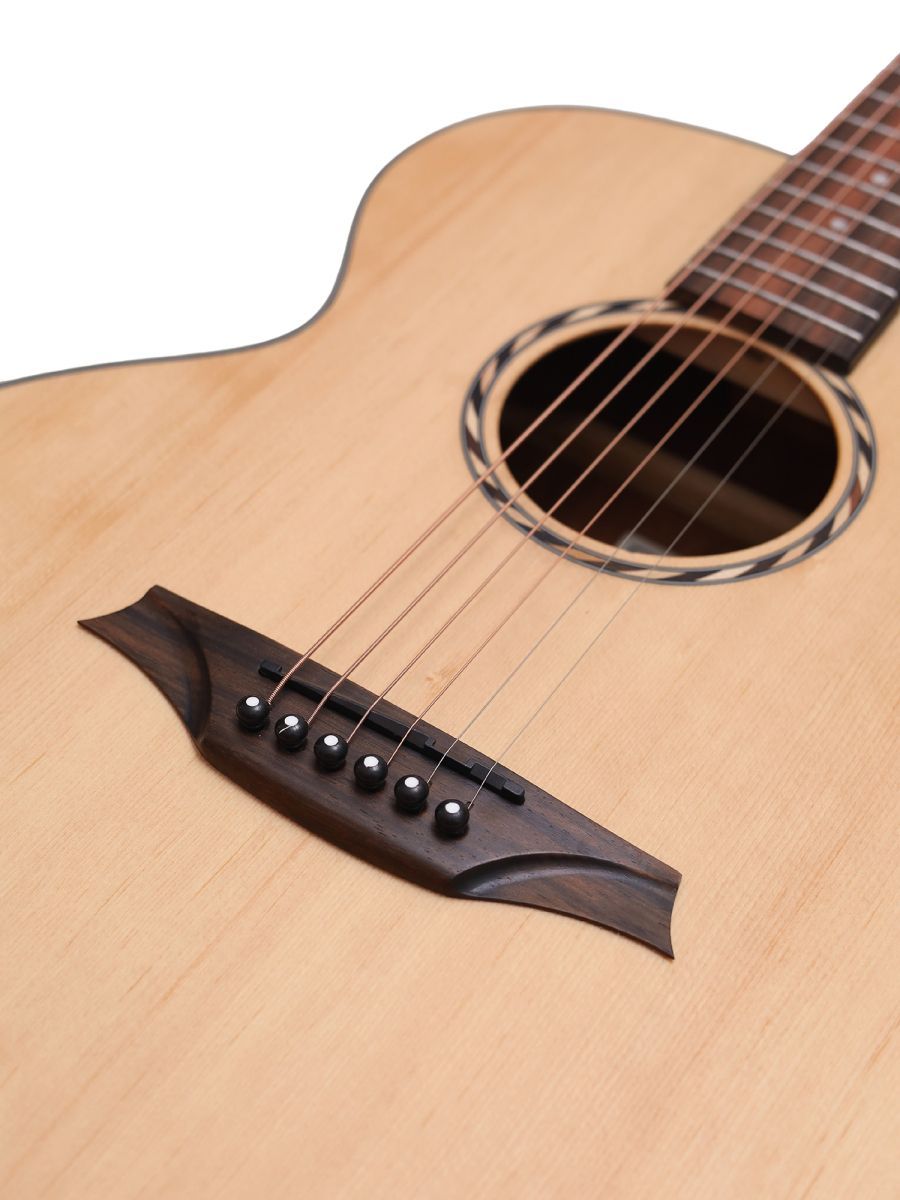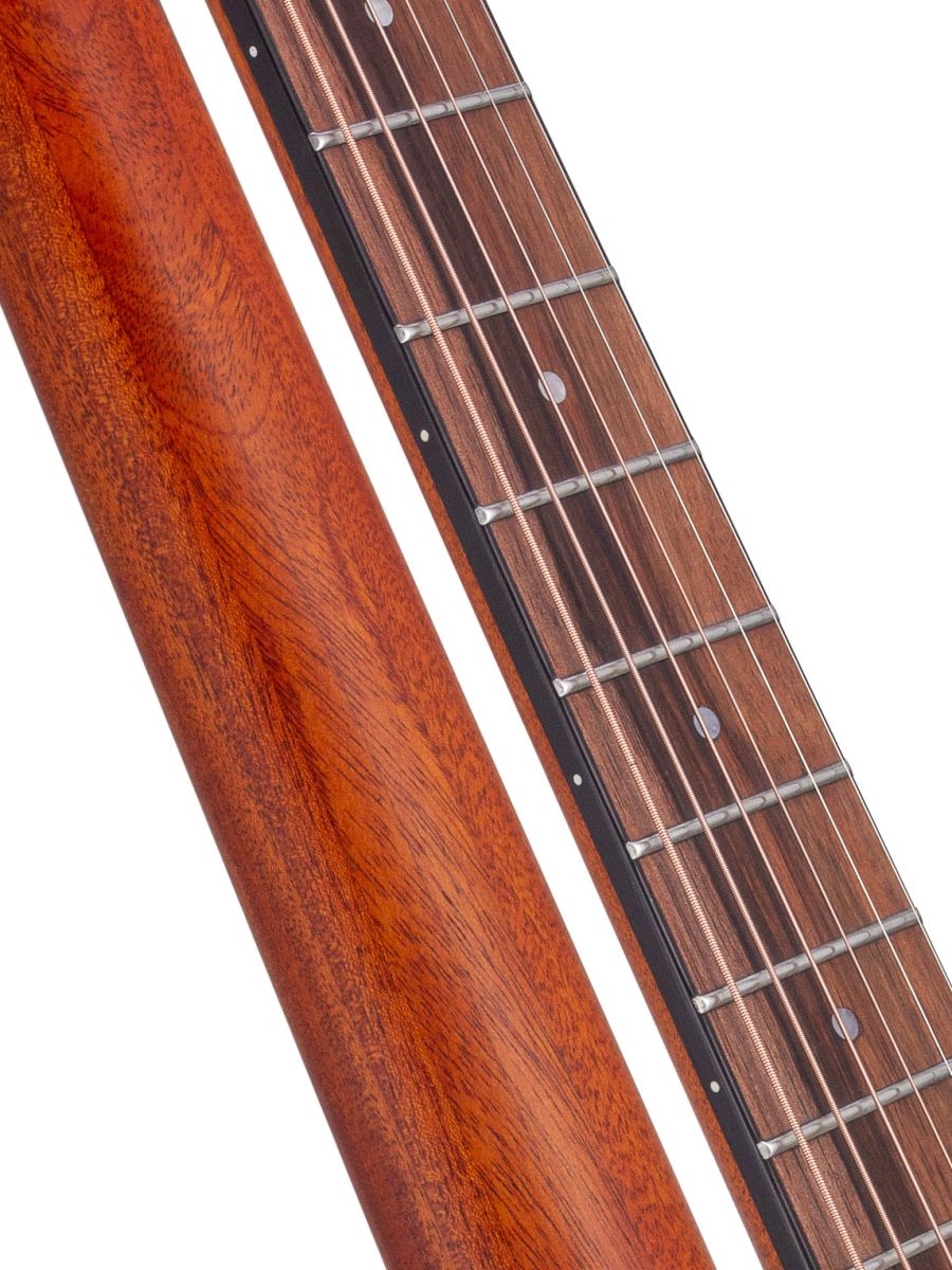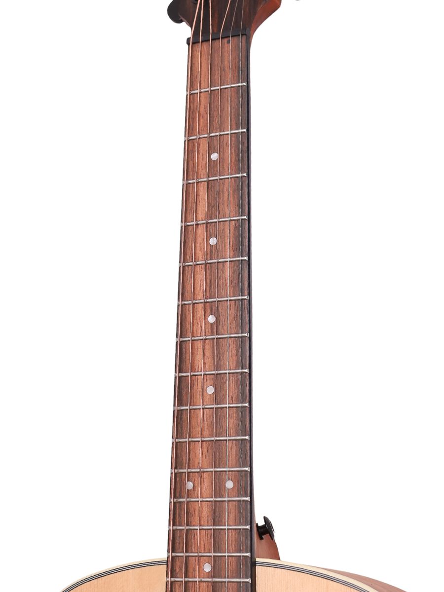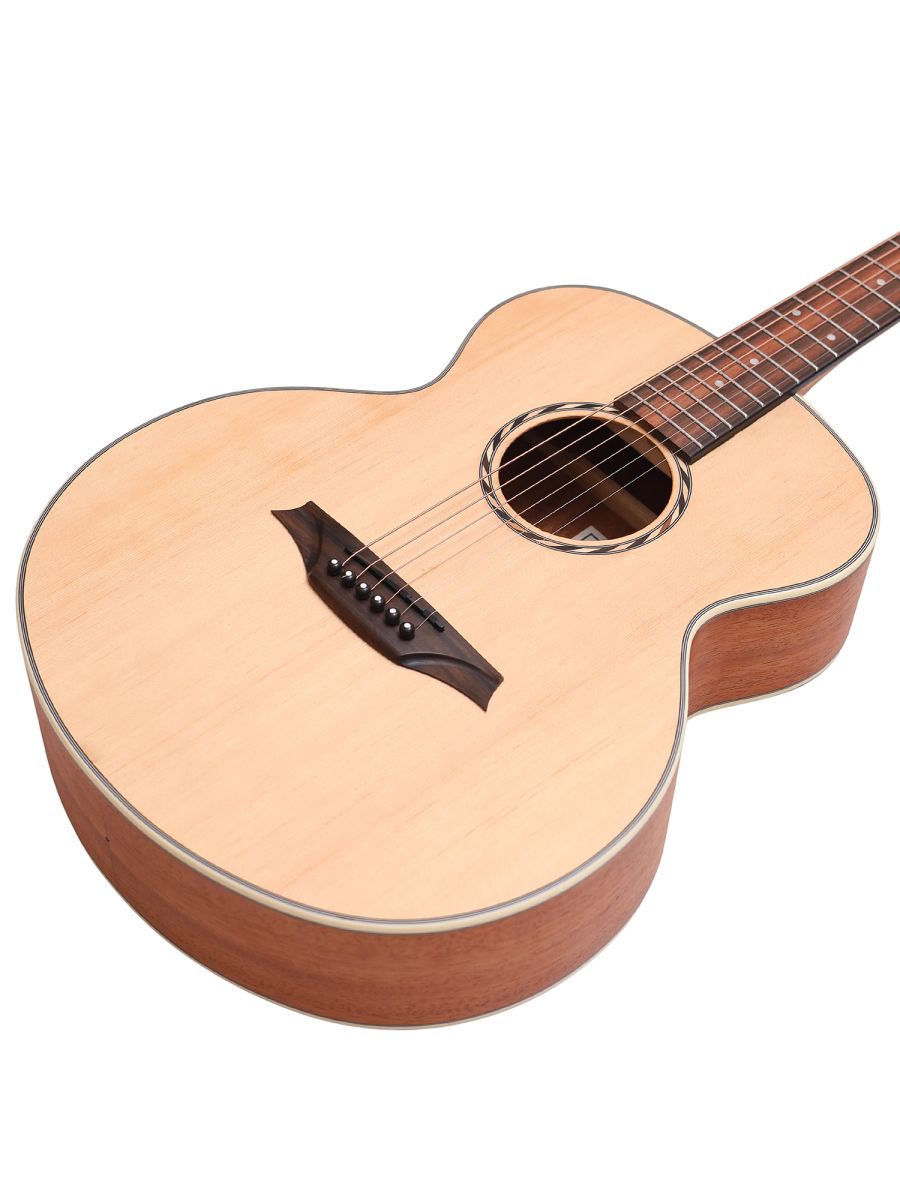 Серия: Appalachian Форма корпуса: Mini Jumbo Мензура: 597 мм (23.50”) Ширина грифа: 43 мм (1 11/16") Верхняя дека: цельная ель Нижняя дека и обечайка: махагони Гриф / накладка грифа: махагони / макассарский эбен Анкерный стержень: двухсторонний Лого на голове: гора Бромо Оформление резонаторного отверстия: «Веревка», черное дерево Amara Бридж: "Mt. Bromo", черное дерево Amara Оформление грифа и пятки: гора Бромо Лады: Jumbo, 20 ладов Верхний и нижний порожки: Nubone XB Колки: литые "Mt. Bromo", черные Отделка: матовая