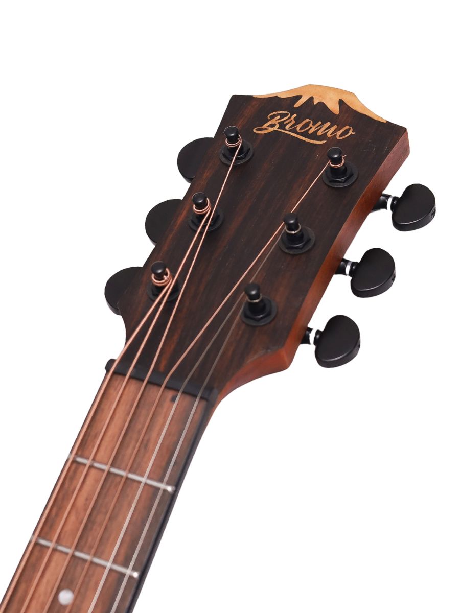 Bromo BAA8S Гитара акустическая Mini Jambo, верхняя дека: цельная ель, нижняя дека и обечайка: махагони, гриф: махагони, накладка грифа: макассарский эбен, двухсторонний анкер, колки: литые "Mt. Bromo", черные, матовая