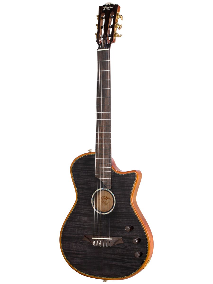 Bromo BEN2CTBK — полуакустическая гитара для музыкантов, ценящих универсальность, глубину звучания и премиальное качество. Модель сочетает традиции классического гитарного мастерства с современными технологиями звукоусиления. Корпус из махагони обеспечивает тёплый, насыщенный тон с выраженной серединой и отличной артикуляцией. Древесина известна стабильностью и долговечностью. Верхняя дека из массива ситхинской ели, облицованная слоем высококачественного огненного окуме класса 5A, не только обеспечивает чистый, выразительный тон, но и излучает экзотическую красоту, обогащенную потрясающе глубокой, волнистой текстурой древесины. Гриф из махагони с двухсторонним анкерным стержнем гарантирует стабильность геометрии грифа при перепадах влажности и температуры. Анкер позволяет точно регулировать профиль грифа для комфортной игры. Нейлоновые струны создают мягкий, бархатистый звук, характерный для классической гитары, снижают нагрузку на гриф и удобны для пальцевой техники. Винтажные колки «Mt. Bromo» обеспечивают плавность хода, высокую точность настройки и стабильность строя, позолоченное покрытие защищает от коррозии и придаёт инструменту элегантный вид. Гибридная электронная система (пьезодатчик + 3‑позиционный звукосниматель) позволяет передавать чистый акустический звук через пьезодатчик, выбирать оптимальный тембр с помощью 3‑позиционного переключателя, уверенно выступать на сцене и записывать в студии с минимальными искажениями. Глянцевое покрытие подчёркивает текстуру древесины, защищает инструмент от внешних воздействий и придаёт роскошный внешний вид. Утеплённый жёсткий кейс обеспечивает надёжную защиту от ударов, перепадов температуры и влажности при транспортировке и хранении. Bromo BEN2CTBK — это гармоничный сплав традиций и инноваций. Богатое звучание, надёжная конструкция, стильная внешность и удобная электроника делают эту гитару идеальным спутником для творчества на любом уровне.
