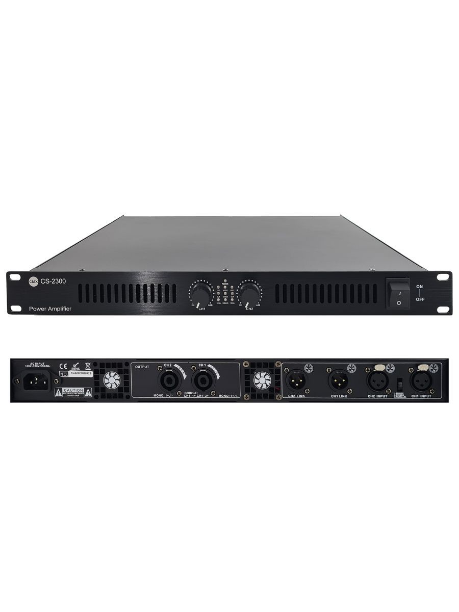 CMX Audio CS-2300 – это качественный рэковый усилитель мощности класса D c импульсным источником питания. Модель отличается компактными размерами.