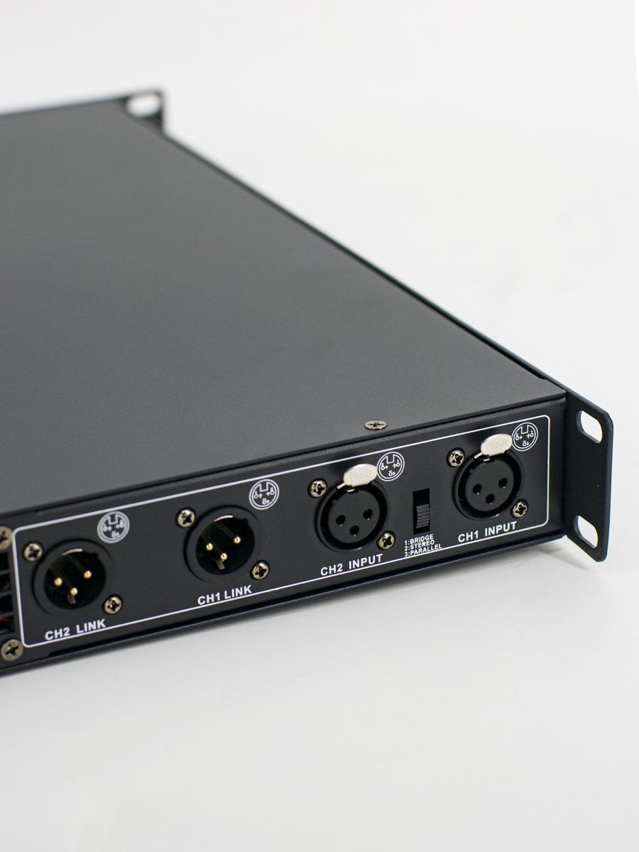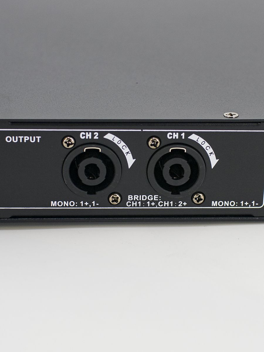 Описание модели: усилитель мощности рэковый Класс: D Мощность RMS/Пик (4 Ом): 2х500 Вт Мощность RMS/Пик (8 Ом): 2х300 Вт Частотный диапазон, Гц: 20-20000 Соотношение сигнал/шум: >105 дБ Входное сопротивление: 20 кОм (балансный), 10 кОм (небалансный) Перекрестные помехи: >75дБ Разъемы: вход XLR, 1В, 20 кОм (балансный), 10 кОм (небалансный) Источник питания: AC 100~240 В, 50/60 Гц Размер (ШxВxГ): 484×375×44 мм Вес: 7.5 кг