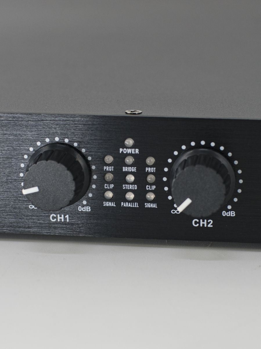 Описание модели: усилитель мощности двухканальный Класс: D Мощность RMS/Пик (4 Ом): 2х600 Вт Мощность RMS/Пик (8 Ом): 2х400 Вт Частотный диапазон: 20-20000 Гц Соотношение сигнал/шум: >105 дБ Входное сопротивление: 20 кОм (балансный), 10 кОм (небалансный) Перекрестные помехи: >75дБ Разъемы: вход XLR, 1В, 20 кОм (балансный), 10 кОм (небалансный) Источник питания: AC 100~240 В, 50/60 Гц Размеры (ШxВxГ): 484×375×44 мм