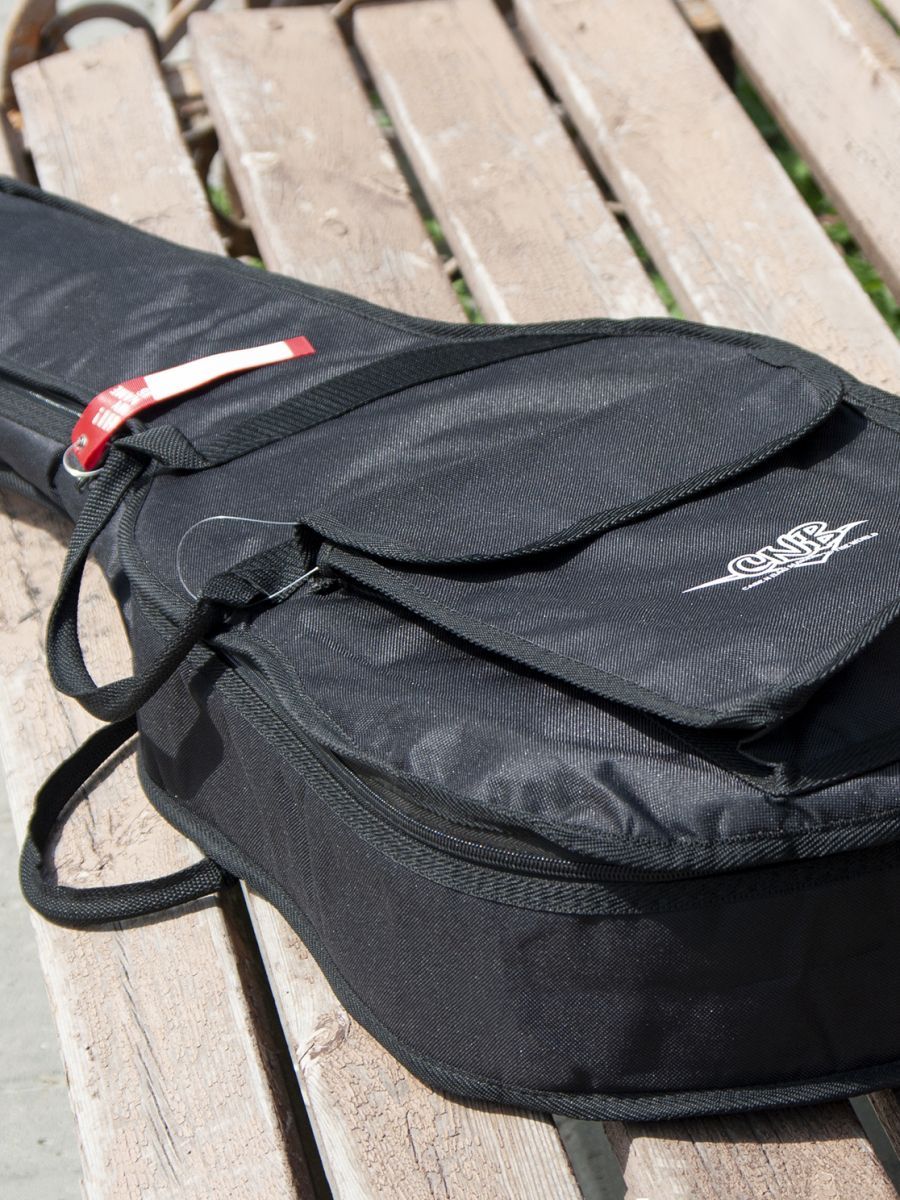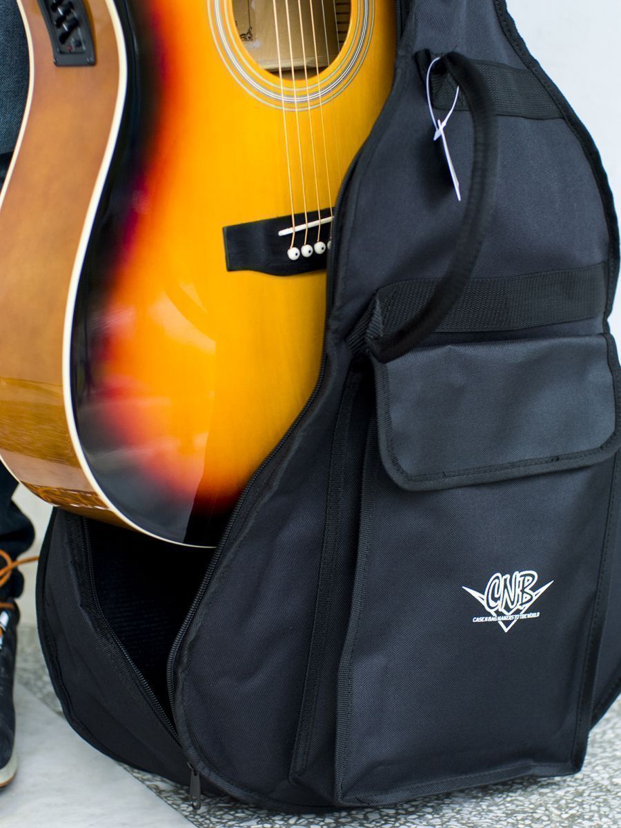 CNB DB400  представляет собой прочный и качественный чехол для акустической гитары. Чехол изготовлен из водонепроницаемого нейлона с плотностью 600 D. Защитное уплотнение толщиной 7 мм предотвращает появление царапин и потертостей на инструменте. Чехол закрывается на прочную молнию с крепкими зипперами. Модель имеет большой наружный карман для хранения нот и гитарных аксессуаров. Заплечный ремень позволяет с удобством переносить гитару за спиной. Для транспортировки инструмента в горизонтальном положении имеются две прочные боковые ручки. Модель CNB DB400 выполнена в черном цвете, однако классический дизайн прекрасно дополняет логотип компании, расположенный на кармане.   Чехол CNB DB400  – надежная защита вашего инструмента от пыли, механических повреждений и температурных перепадов.