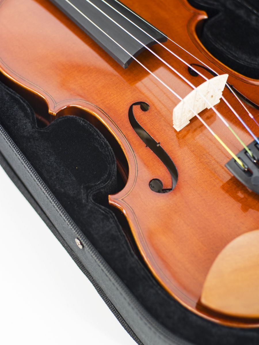 HMI HV-200CH 4/4 — скрипка размера 4/4 для начинающих музыкантов, изготовленная из массива ели и клёна. Гриф инструмента выполнен из чёрного дерева, дека и обечайки покрыты лаком. В комплекте идут кейс, смычок и канифоль для комфортной игры.
