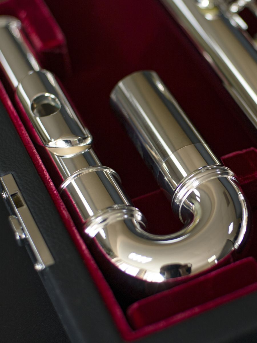 Jupiter JAF1000XE Флейта альт G, закрытые клапаны не в линию, прямая и изогнутая головки, E - механика, материал корпуса, головки и нижнего колена -нейзильбер, пружинки - нержавеющая сталь, подушки - двойная кожа, посеребренная, клапаны и механика - мельхиор, кейс JKC-AF15, чехол JKB-AF16