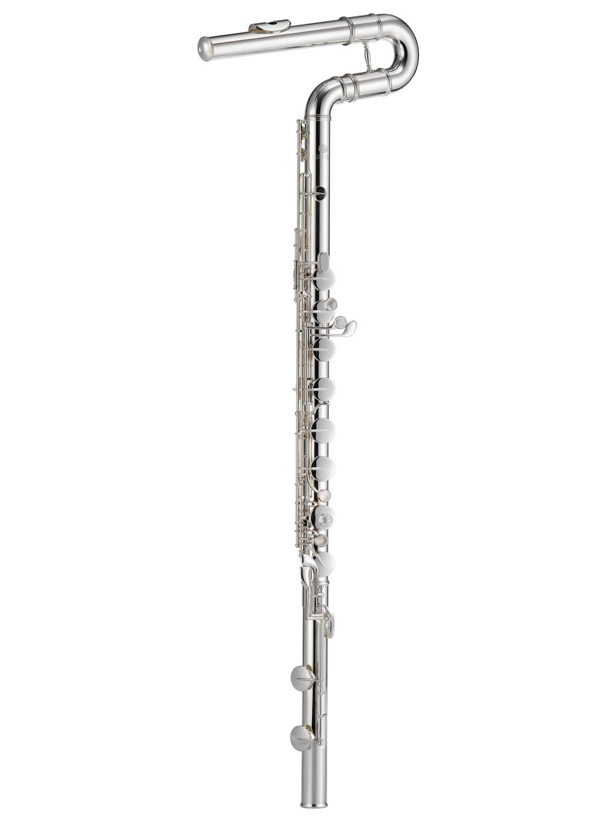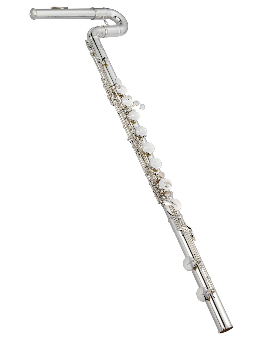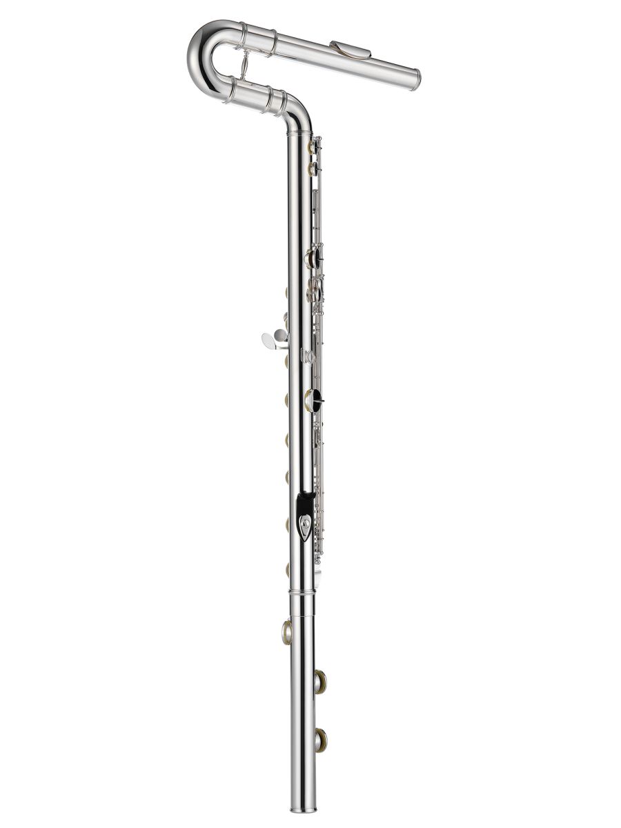 Jupiter JBF1100E Флейта бас C, закрытые клапаны не в линию, вертикальный стиль, E - механика, материал корпуса, головки и нижнего колена -нейзильбер, губки - серебро 925 пробы, пружинки - нержавеющая сталь, подушки - двойная кожа, клапаны и механика - нейзильбер, посеребренная, кейс JKC-BF27AA