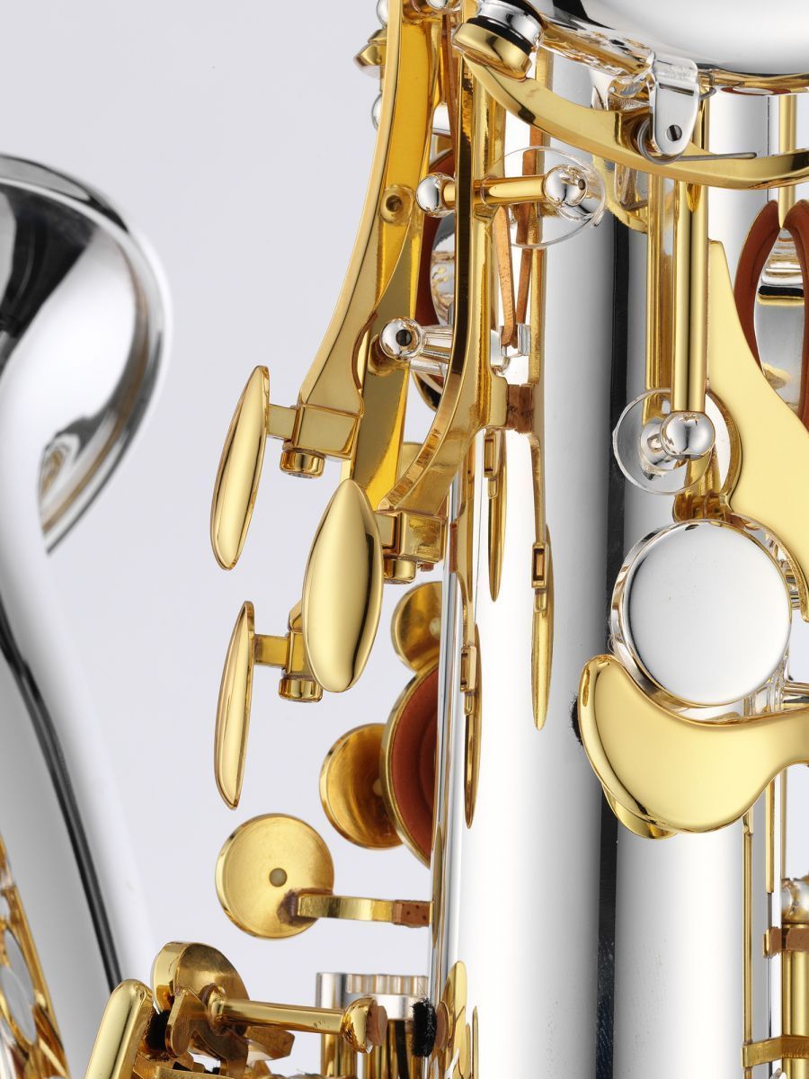 Серия: Performance Строй: Eb Корпус: латунь Покрытие корпуса: посеребренный Эска: из латуни посеребренная Клапаны: золотой лак Механика: клапан верхнего F#/ нижнего A Упор для большого пальца: регулируемый металлический Подушки: фирмы Pisoni с металлическими резонаторами В комплекте: деревянный кейс на колесах JKC-BS73W
