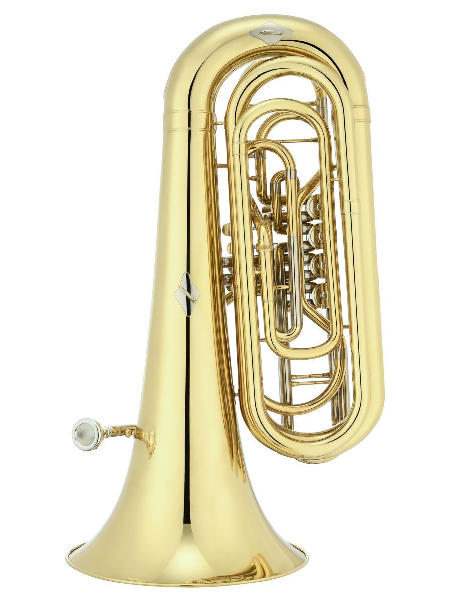 Туба BBb, 3/4, мензура 16,8, раструб 366 мм, 4-х вентильная, лакированная, кейс с ко