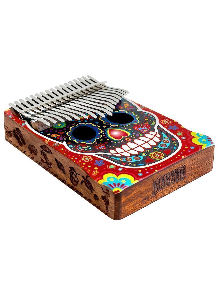 Mahalo MKA17SK Калимба 17 язычков, резонатор в виде деревянного короба, два звуковых отверстия на нижней деке, материал - трембези, в комплекте настроечный молоток, руководство пользователя, замшевый чехол для переноски, графический дизайн Skull