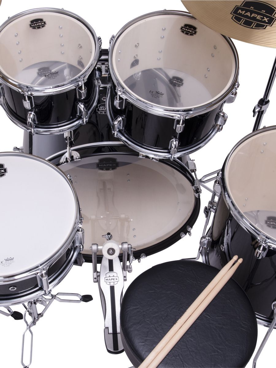 Конфигурация: – бас-барабан 22”x16” – том-том 10”х7” – том-том 12”x8” – напольный том 16”x14” – малый барабан 14”x5” Комплектация: – стойка для хай-хэта H250 – стойка для малого барабана S250 – стойка для тарелки С250 – cтойка типа "журавль" для тарелок Mapex B250 – педаль P250 – стул T400 – тарелки 14" HiHat – тарелка 16" Crash – тарелка 20" Ride Ударная установка Mapex CM5295FTCDK – это отличный выбор для музыкантов, которым необходим качественный инструмент по доступной цене.