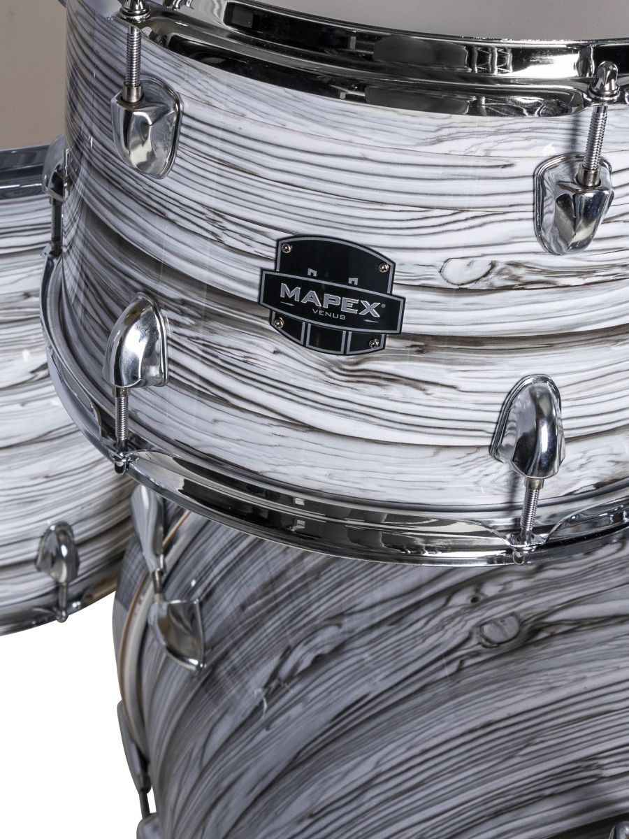 Серия: Venus Limited Edition Корпус: тополь, 9 слоев, толщина 7,2 мм Система крепления томов: SONIClear Пластики: Remo UC Фурнитура: хром Покрытие корпусов: White Marblewood
