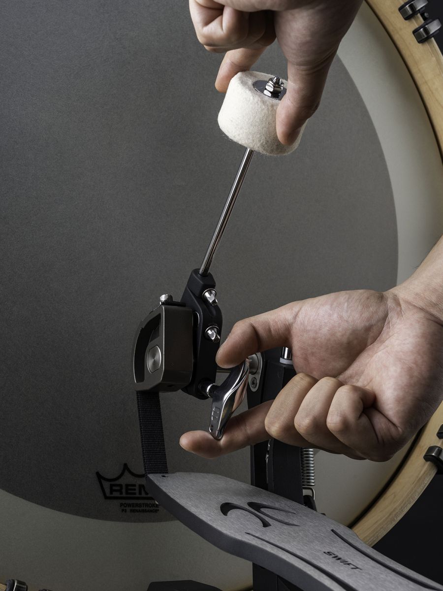 Mapex PDLSW1 — это инновационная педаль для бас-барабана с ременным приводом, разработанная с учетом потребностей современных барабанщиков. Модель входит в престижную серию Design Lab и представляет собой идеальное сочетание эргономики, надежности и производительности. Созданные для скорости, производительности и стиля, педали Swift Belt Drive обеспечивают молниеносную реакцию и точность. Благодаря передовым функциям Design Lab Hardware, эти элегантные педали предлагают непревзойденную выразительность и плавное, тонкое управление. Технические особенности и функции: - Лёгкая регулировка натяжения пружины несколькими поворотами, возможна даже во время коротких перерывов. - Усиленная конструкция шарнира с подшипниками обеспечивает сверхплавную и бесшумную работу и гарантирует долговечность. - Настройка угла наклона колотушки без влияния на угол подножки - гибкость для любого стиля игры. - Зажим для обода Easy Reach: регулировка положения обода одной рукой, универсальная фиксация ободов разных форм и размеров. - Быстросъёмный пружинный механизм: быстрая разборка для транспортировки, удобная установка перед выступлениями. Целевая аудитория: - Студийные и сессионные барабанщики: ценят стабильность, точность и плавность ременного привода в условиях записи. - Исполнители разных жанров: нуждаются в тонком динамическом контроле и чувствительности к лёгким прикосновениям. - Преподаватели и музыканты, ориентированные на технику: фокусируются на развитии контроля и артикуляции, а не на скорости. - Любители премиального оборудования: заинтересованы в инновационном дизайне и эксклюзивности первой ременной педали Mapex. В комплект входит чехол Smart-Form, который оснащен съемной уплотнительной подушкой для стабилизации педали во время транспортировки и удобной ручкой для комфортной переноски. Mapex PDLSW1 — это профессиональное решение для требовательных барабанщиков, которым важна надежность и стабильность работы педали. Благодаря инновационным технологиям и высококачественным материалам, эта модель обеспечивает превосходный отклик и долговечность в эксплуатации.