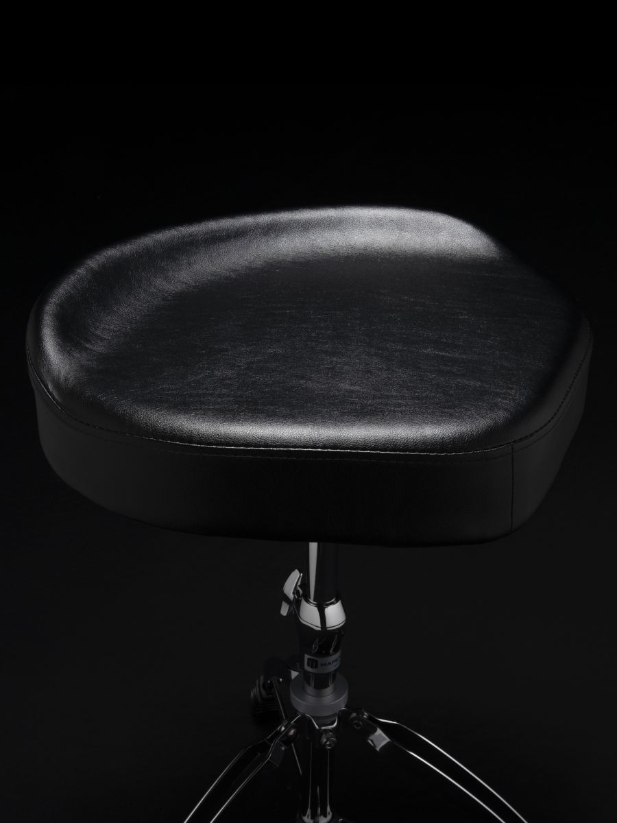 Mapex T675A – надежный и устойчивый cтул с виниловым мото-сиденьем. Инновационные изменения, по сравнению с предшествующей моделью – увеличенная площадь сиденья для максимального комфорта во время длительных выступлений и репетиций, скругленный край для комфортного размещения бедра, наклон сиденья на 2,5° для идеальной осанки. Двойные ножки обеспечивают максимальную стабильность и надежность. Высококачественные материалы гарантируют длительный срок службы. Ось без резьбы обеспечивает удобство сборки и обслуживания. Компактный размер в сложенном виде позволяет легко транспортировать стул. Mapex T675A — это профессиональное решение для требовательных музыкантов, которые ценят комфорт, надежность и инновационные решения.
