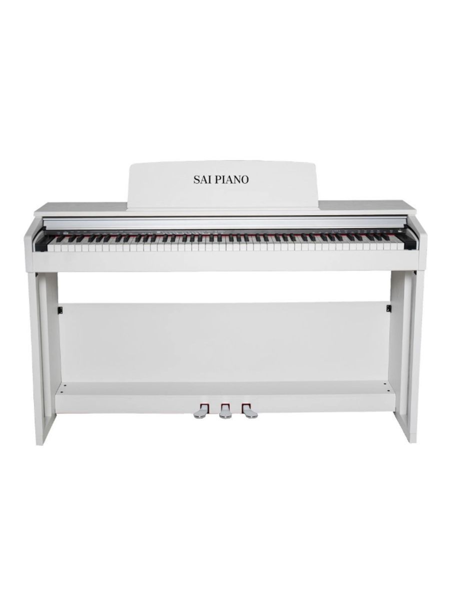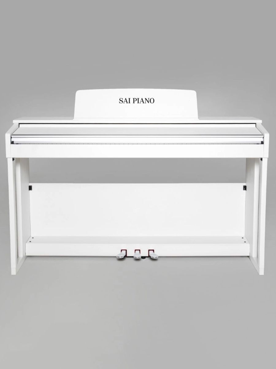 Sai Piano P-150WH Пианино цифровое, 88 клавиш, молоточковая механика, 300 тембров, 128 полифония, 60 предустановленных песен, 200 ритмов, реверберация, хорус, динамики 2*25Вт, стойка, три педали, цвет белый